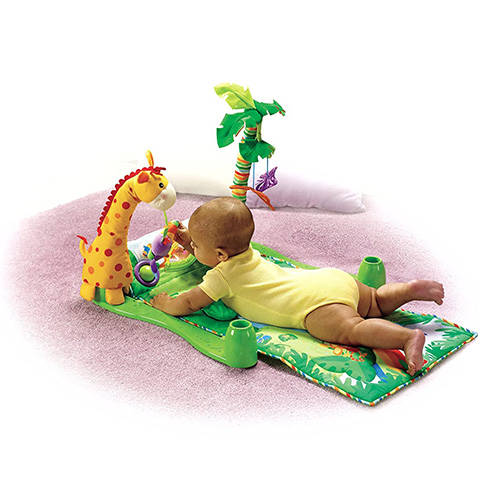 تشک بازی طرح جنگل فیشر پرایس مناسب نوزادان از بدو تولد می باشد. با توجه به این که نوزدان از بدو تولد قابلیت شناسایی تمامی رنگ را ندارند و نیاز به فعالیت بیشتر و دست پا زدن دارند این تشک بازی می تواند کمک مناسبی برا مادران باشد تا با کمک این تشک هوش و فعالیت و عضلات کودک را افزایش دهند.