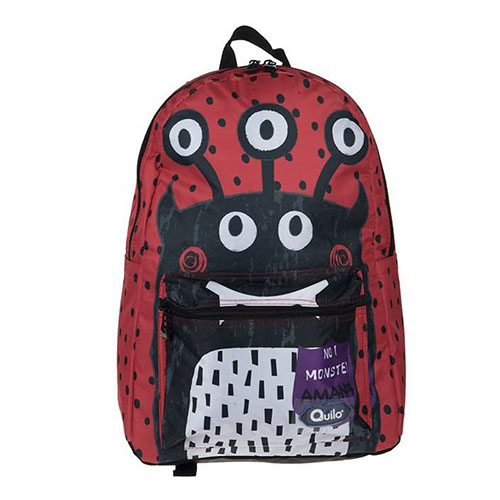 قطعا هیولای طراحی شده بر روی این مدل از کوله پشتی کوییلو یکی از بامزهترین و فانتزیترین هیولاهای ممکن است. این هیولا پنج چشمی با لبخندی شیرین میتواند طرفداران زیادی داشته باشد که علاوه بر طراحی زیبا و فانتزی با جنسی از پلیاستر دارای کیفیتی مناسب است. با طراحی فانتزی و زیبا و ویژگیهای مناسب این کیف میتوانید با خیال آسوده آن را انتخاب کنید. با توجه به کیفیت خوب این کولهپشتی میتوانید از آن تا مدتی طولانی استفاده کنید. برای خرید یک کوله باید موارد گوناگونی همچون جنس، وزن، تعداد جیبها، جنس زیپها و … را در نظر گرفت. این کوله ویژگیهایی همچون قابلیت شستشو، مقاوم در برابر ضربه، دو جیب بدون بست در دو طرف برای حمل قمقمه و بطری آبمعدنی، پد در قسمت داخلی و پوشش توری در بندها و قسمت پشتی برای مانع شدن از تعریق هنگام حمل، قابلیت تنظیم طول بندها به اندازهی دلخواه، قسمتی برای قرار دادن لپ تاپ و حمل آسان آن و … را دارا است.